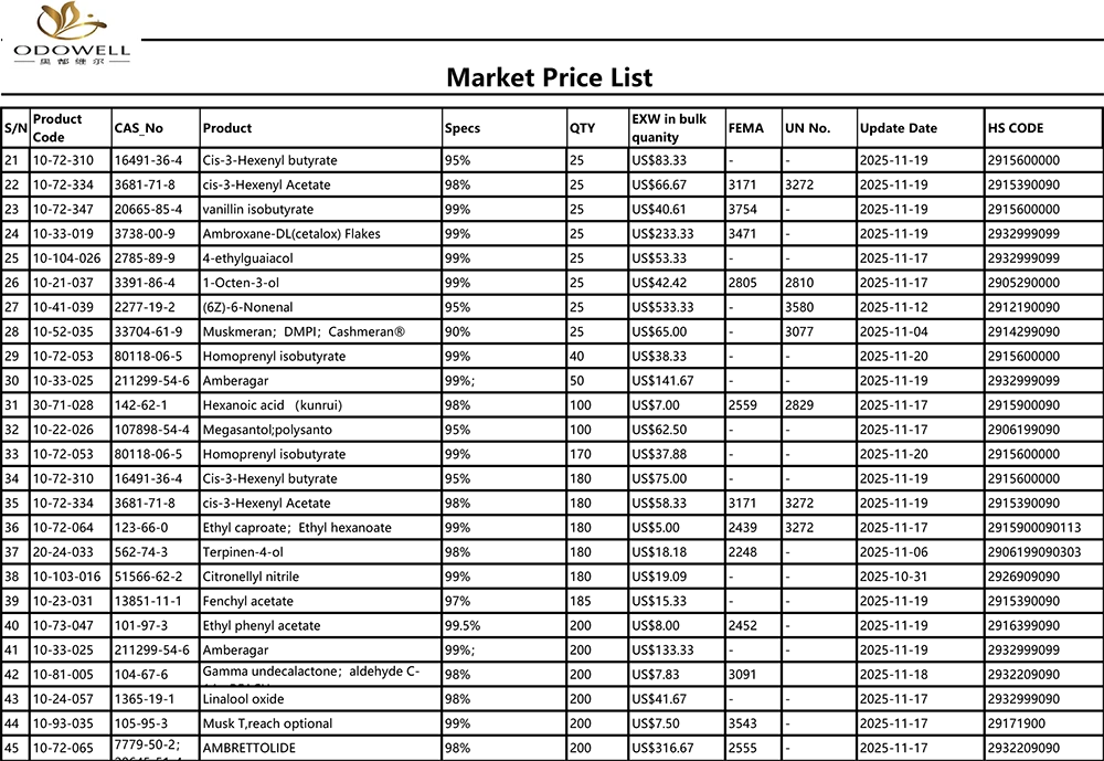 Lista de precios de mercado de Odowell-2025.10.25-2025.11.25